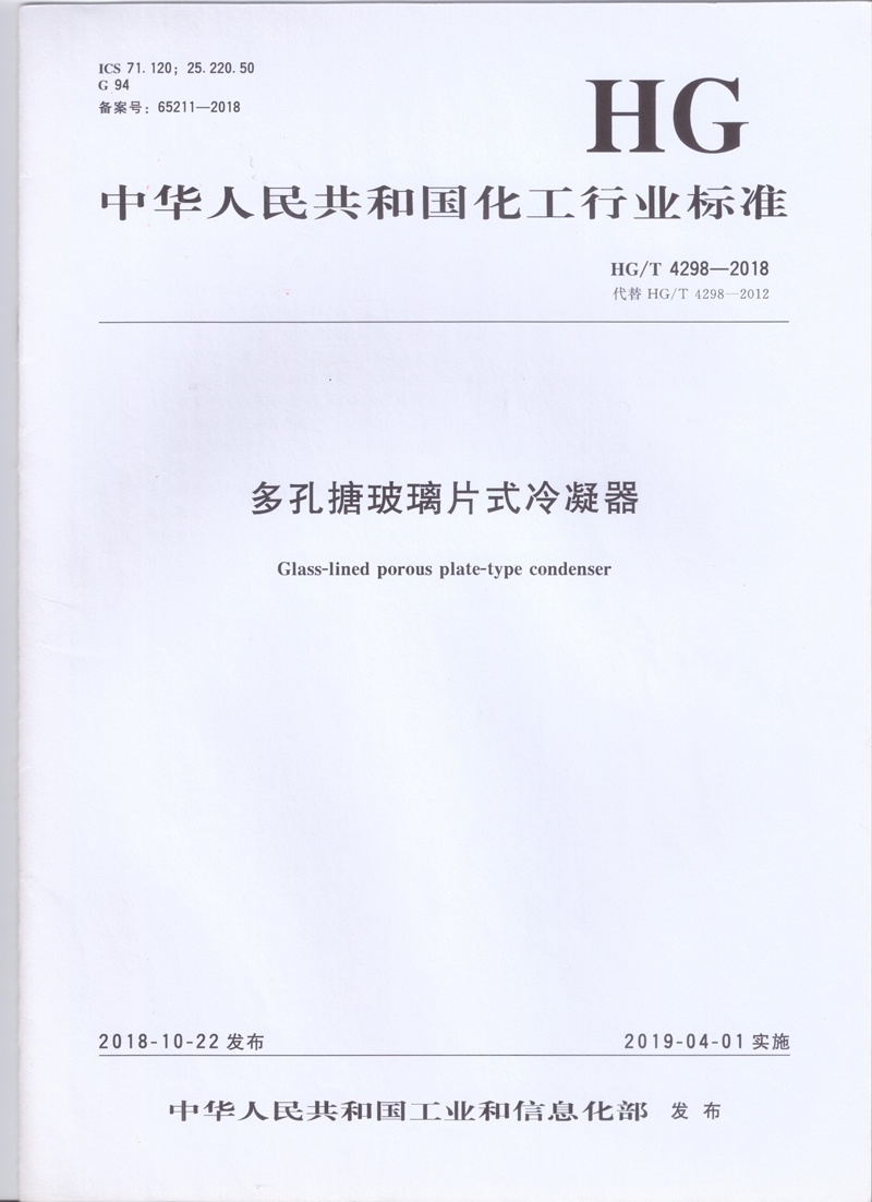 HG/T 4298一2018 多孔搪玻璃片式冷凝器