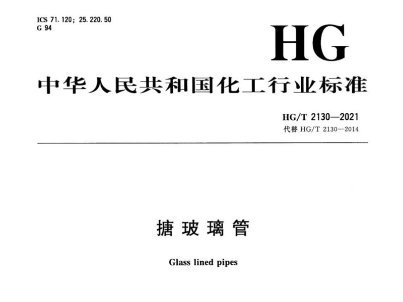 中華人民共和國化工行業(yè)標準HG/T 2130-2021搪玻璃管 點擊下載搪玻璃管行業(yè)標準