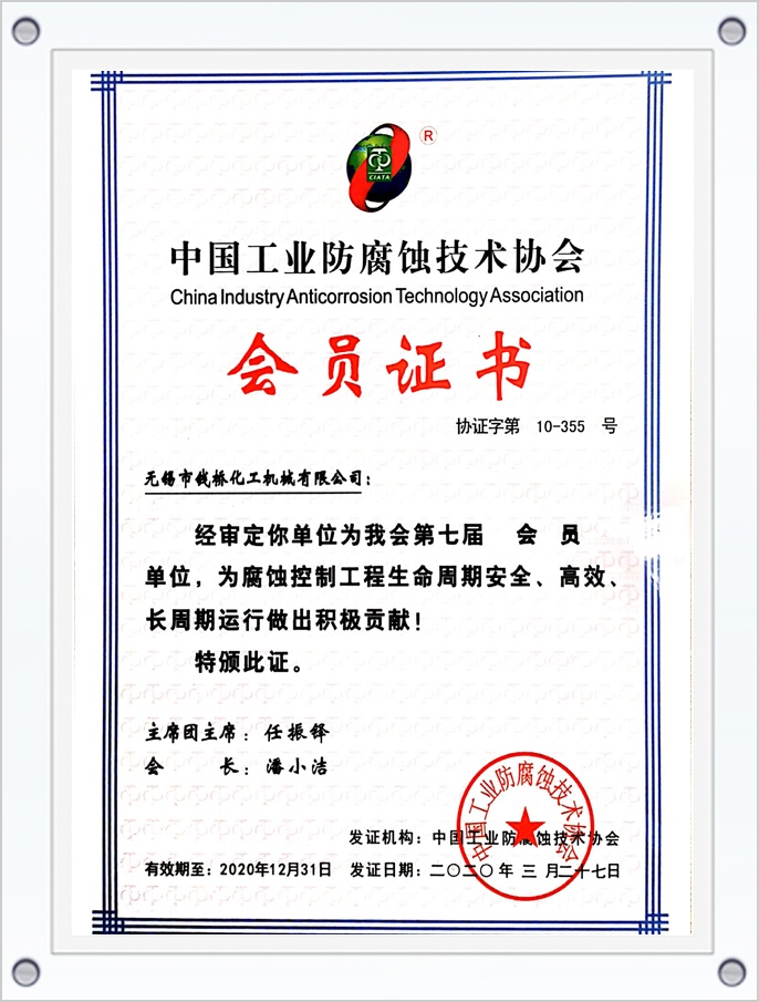 中國(guó)工業(yè)防腐蝕技術(shù)協(xié)會(huì)會(huì)員證書(shū)