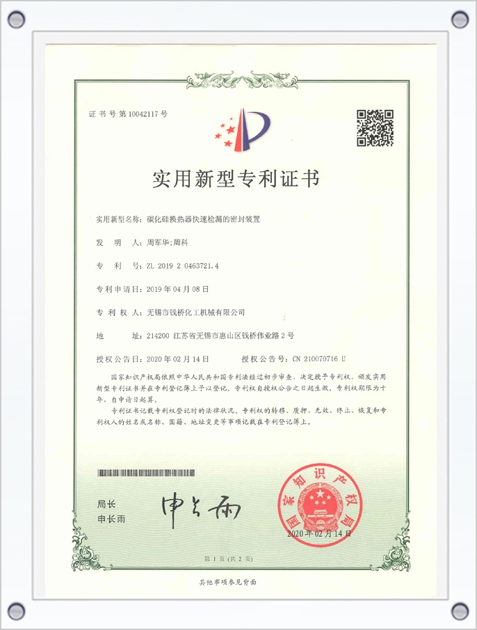 下一篇:碳化硅換熱器內(nèi)測密封裝置專利證書