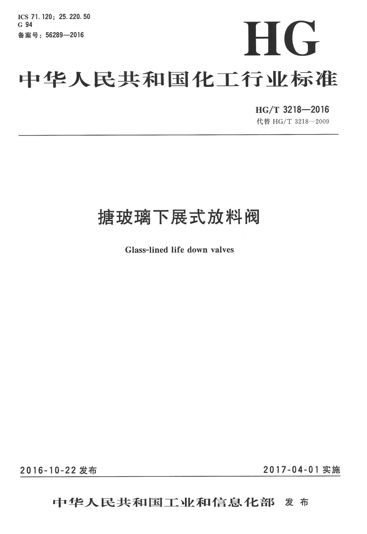 HG/T 3218-2016搪玻璃下展示放料閥標準簡介