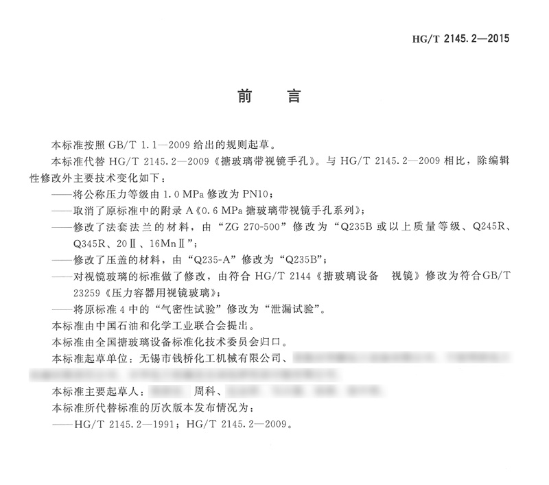 HG/T 2145.2-2015搪玻璃帶視鏡手孔化工行業(yè)標(biāo)準(zhǔn)簡介和下載