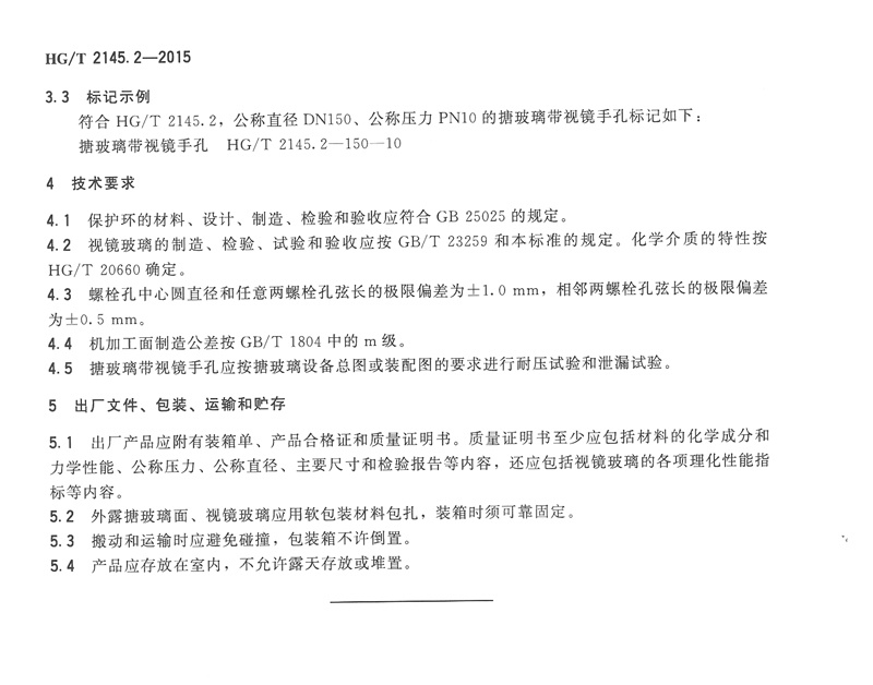 中華人民共和國化工行業(yè)標(biāo)準(zhǔn)HG/T 2145.2-2015搪玻璃帶視鏡手孔 點擊下載搪玻璃帶視鏡手孔行業(yè)標(biāo)準(zhǔn)