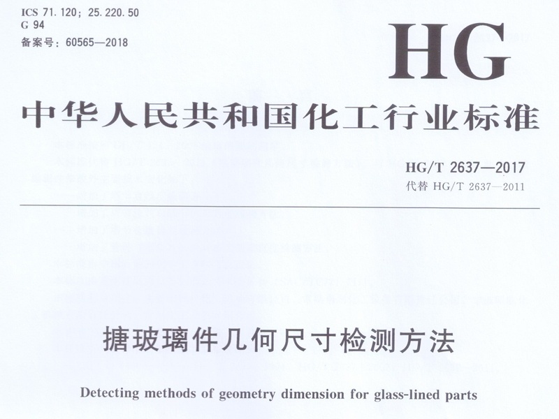 2021-02-28HG/T 2637-2017 搪玻璃件幾何尺寸檢測方法 1、范圍:本標(biāo)準(zhǔn)規(guī)定了排玻璃件形位公差的檢測方法。本標(biāo)準(zhǔn)適用于GB 25025 規(guī)定的塘玻璃件形位公差的檢測。2、規(guī)范性引用文件:下列文件對于本文件的應(yīng)用是必不可少的。凡是注日期的引用文件,僅注日期的版本適用于本文件。凡是不注日期的引用文件,其最新版本(包括所有的修改單)適用...