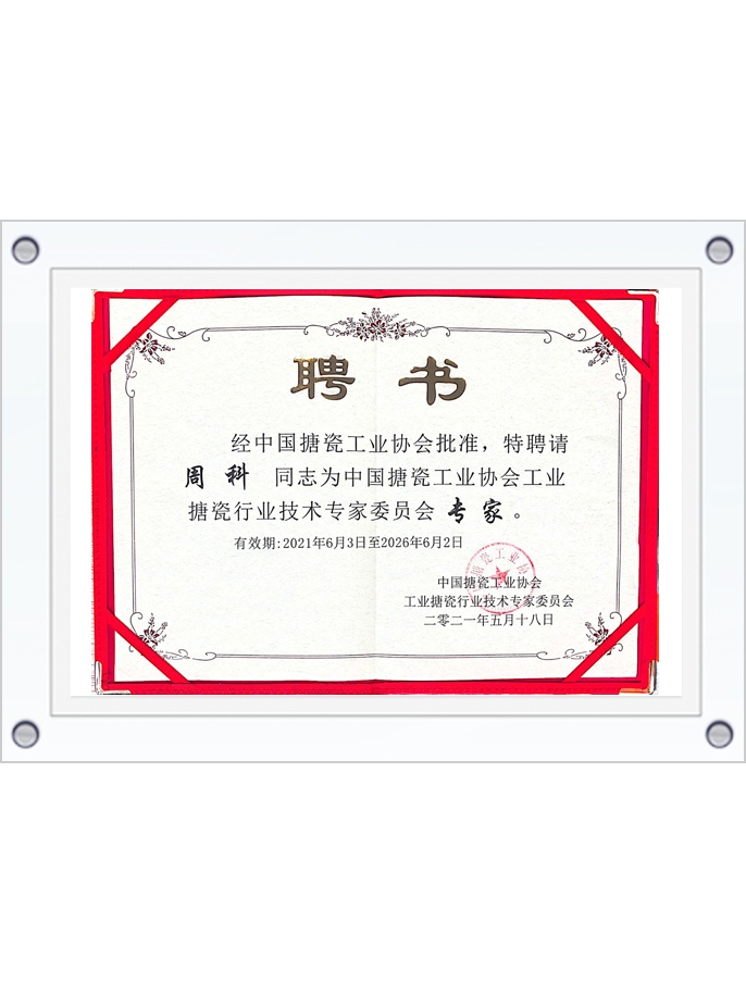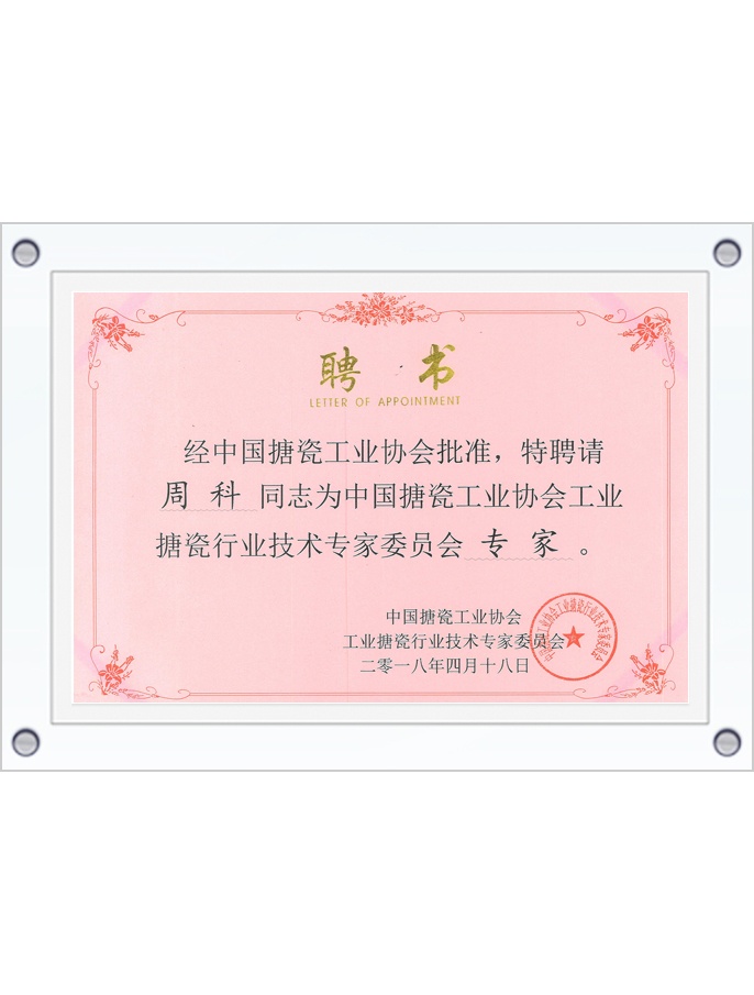 中國搪瓷工業(yè)協(xié)會工業(yè)搪瓷專家聘書