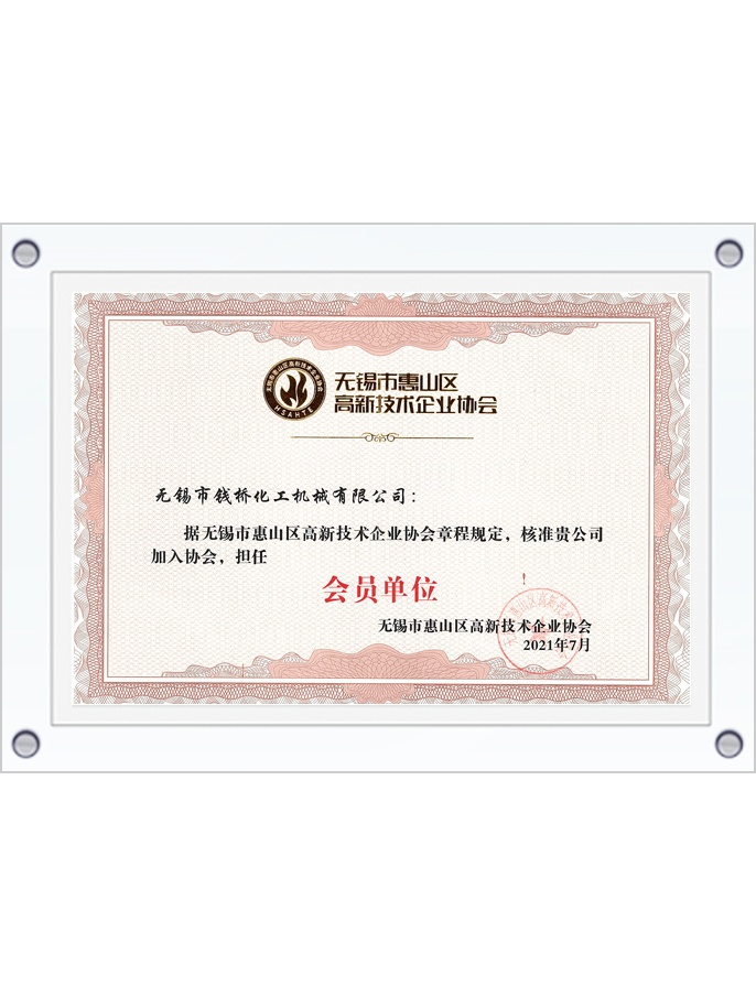 中國化工裝備協(xié)會會員單位證書