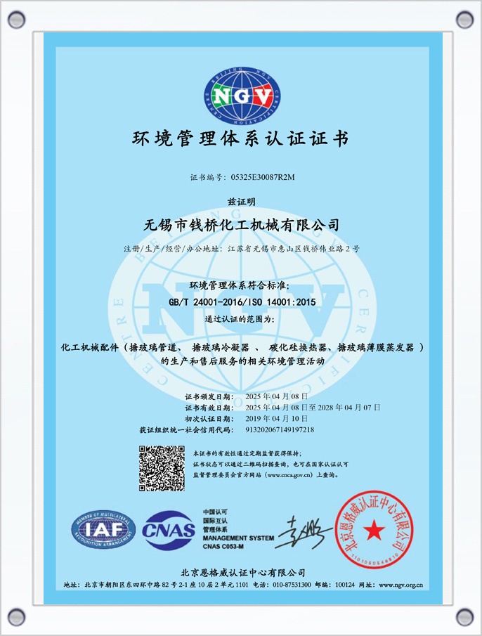 環(huán)境管理體系認證證書